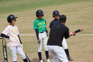 基礎練習からバッティング練習、さらに中学野球で必要となるバント練習にも取り組みました。